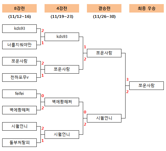 | 4강(2명) | kds93 | 벽에쾅해쩌 | ||