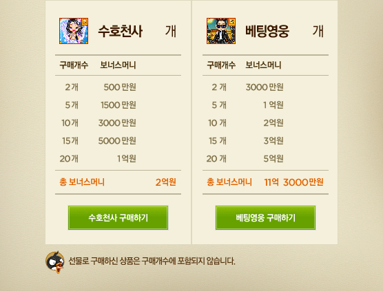◆ 이벤트 내용 : 베팅영웅 아바타 or 수호천사 아바타를 구매하시면 아바타 구매 개수에 따라