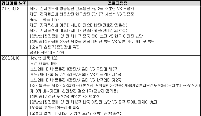 4월 둘째주 바둑TV 프리미엄 서비스 동영상 업데이트 일정을 안내해 드립니다.