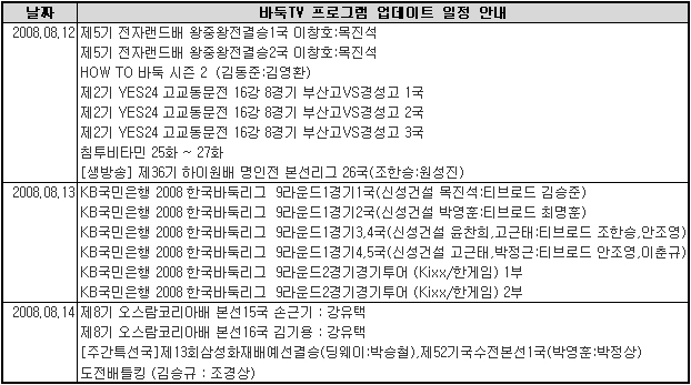 7월 5주차 바둑TV 동영상 서비스 업데이트 일정을 안내해 드립니다.