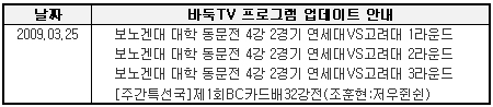 3월 4주차 바둑TV 동영상 서비스 업데이트 내용을 안내해 드립니다.