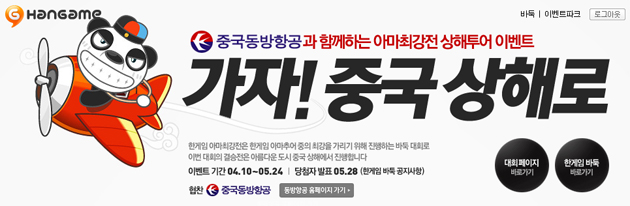 한게임 아마추어 최강을 가리는 '5회 한게임 아마최강전 상해 투어' 기념 이벤트를 마련하였습니다.