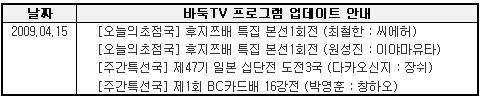 4월 3주차 바둑TV 동영상 서비스 업데이트 내용을 안내해 드립니다.
