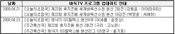 4월 4주차 바둑TV 동영상 서비스 업데이트 내용을 안내해 드립니다.