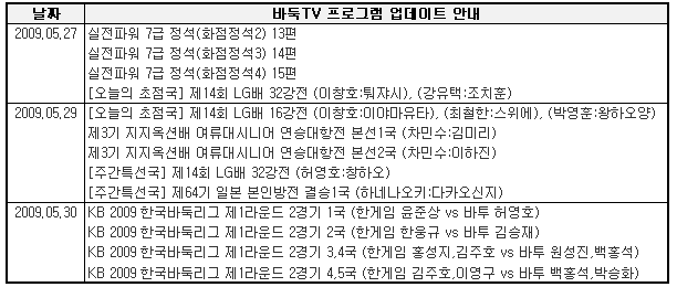 5월 3주차 바둑TV 동영상 서비스 업데이트 내용을 안내해 드립니다.