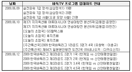 6월 2주차 바둑TV 동영상 서비스 업데이트 내용을 안내해 드립니다.