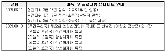 8월 2주차 바둑TV 동영상 서비스 업데이트 내용을 안내해 드립니다.