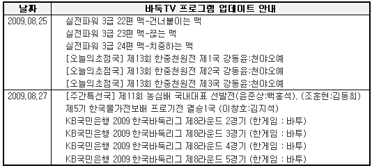 8월 4주차 바둑TV 동영상 서비스 업데이트 내용을 안내해 드립니다.