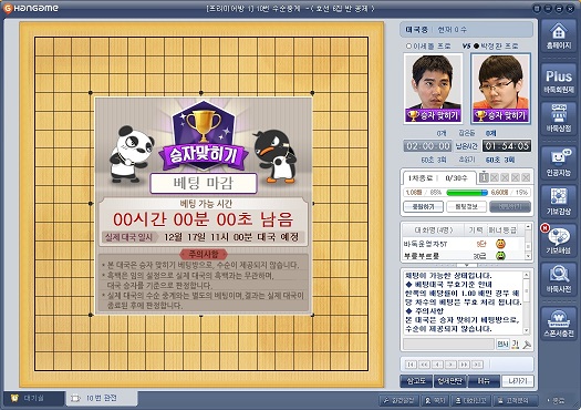 2. 승자맞히기 베팅방은 실제 프로대국 시작 시각보다 이전에 별도로 개설됩니다.