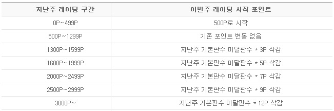 ㄴ 리그점수는 전적 점수와 레이팅 증감을 합산하여 계산하며,
