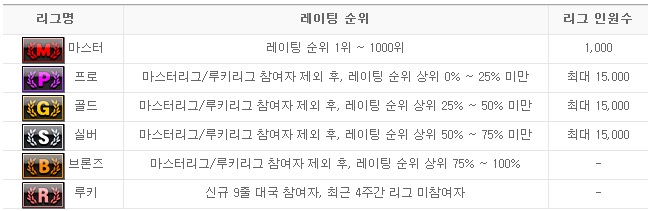 * 전적 점수: 기본점수 1,000점, 승리 시 5점, 패배 시 1점