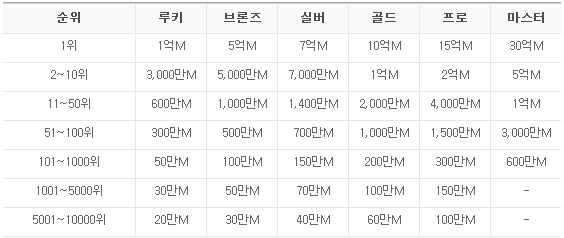 ㄴ 경품 : 바둑머니 100만M(100% 지급). 스타벅스 카페모카(100명 추첨), 문화상품권 5만원(10명 추첨),