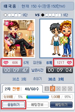 - 대회대국 본선대국 최대 10억M 베팅 가능 (베팅 1회 기준)