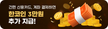 - 간편 신용카드, 간편 계좌이체로 한코인을 결제한 금액이 10만원을 넘으면 자동으로 이벤트에 참여됩니다.